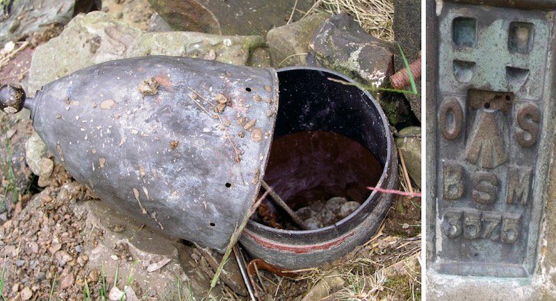 Calling on his knowledge of history and archaeology, he thought out a way to draw attention to the rich products of past makers: the artefacts that bear witness to their craftsmanship, ingenuity and sense of design. He sought to demonstrate that artists still make beautiful things, and to remind people of the rich wildlife, past and present. Hand-minted in lead and copper, the Waymerks are ‘art tokens’. There are thirteen reverse designs, for thirteen stages of the footpath, and a common obverse. The latter is a palimpsest of earthworks which suggest mankind’s impact on the landscape. A Bronze Age beaker, an Iron Age sickle with a phallic handle, and an Anglo-Saxon beast from a ring are represented on the Waymerks. A wild boar appears for the Melrose section of the walk. This has double resonance: not only a former resident, it was also the insignia of the XX Legion at nearby Trimontium. The Waymerks are left in hoards in artist-made kists. These have been concealed, though never completely buried, at remote and lovely places along the Way.