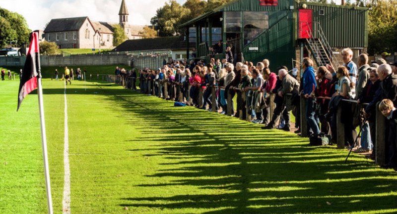 There is a public football field adjacent the enclosure of Dalbeattie Star’s private ground. Star’s ground has a small glass- gabled crinkly-tin clad stand, emblematic and representing grass-roots level regional community football.