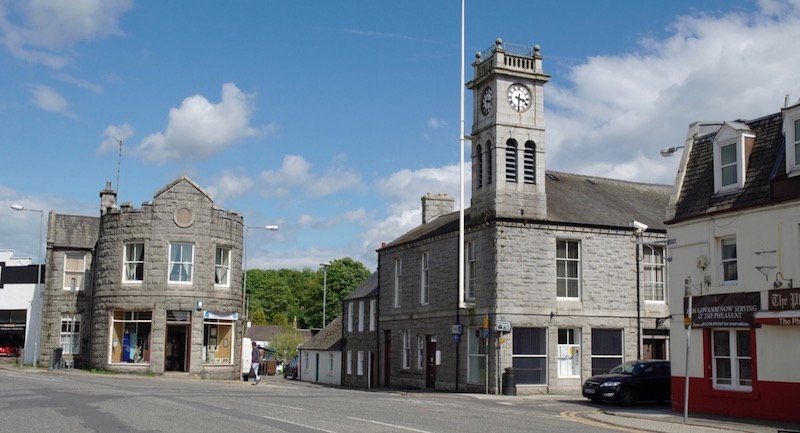 The town hall sits sentinel at the head of the High Street where it crosses Kirkgunzeon Lane River and meets the roads leading to Castel Douglas and Dumfries.